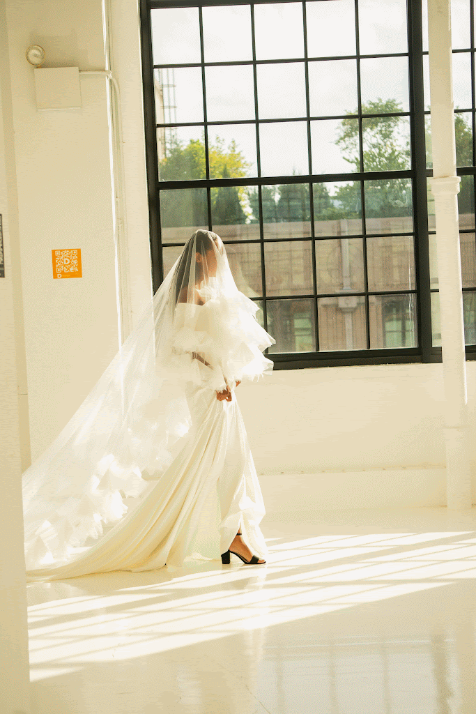 With its flowing silhouette and intricate details, this bridal gown resonates with the heart of Nouvelle Productions’ NYFW presentation. By pairing this modern-day fairy-tale design with soft, natural light filtering through industrial windows, the production team allowed the gown to take center stage, embodying the fusion of tradition and contemporary artistry.